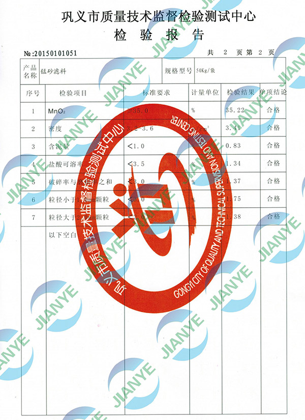 2020錳砂第三方檢測(cè)報(bào)告【建業(yè)凈水】